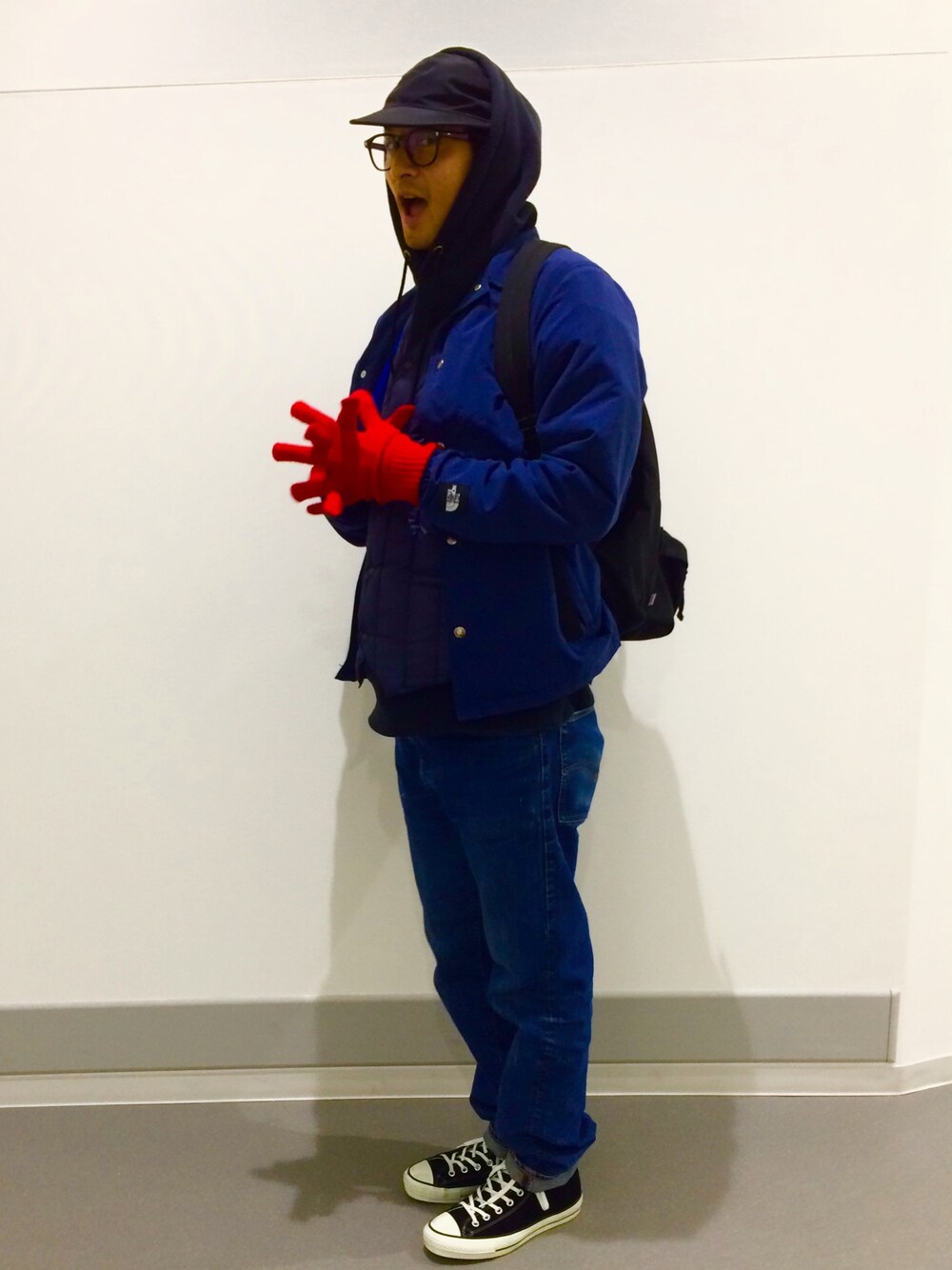 寒いの嫌いなんで防寒ばっちり! ロッキーマウンテンのインナーダウン軽くて調子よい。かなりオーバーサイズにしてダラリと着てる。