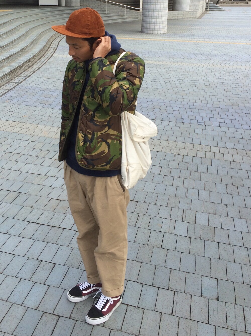 junya_kasugaのチノパンツ「BEAMS PLUS / 2プリーツ チノパンツ」を使ったコーディネート