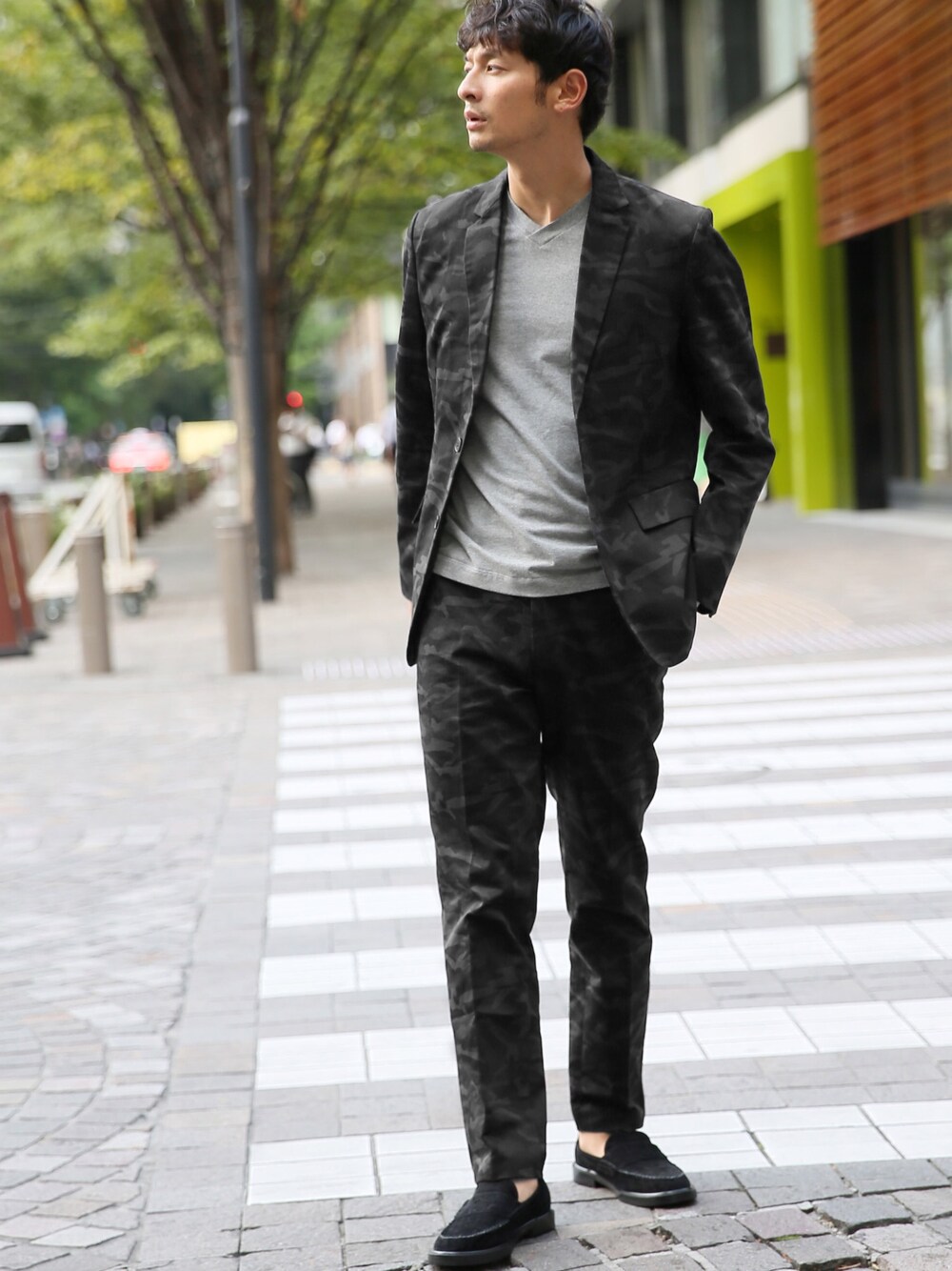 junya_kasugaのテーラードジャケット「カモフラテーラードジャケット/733583」を使ったコーディネート