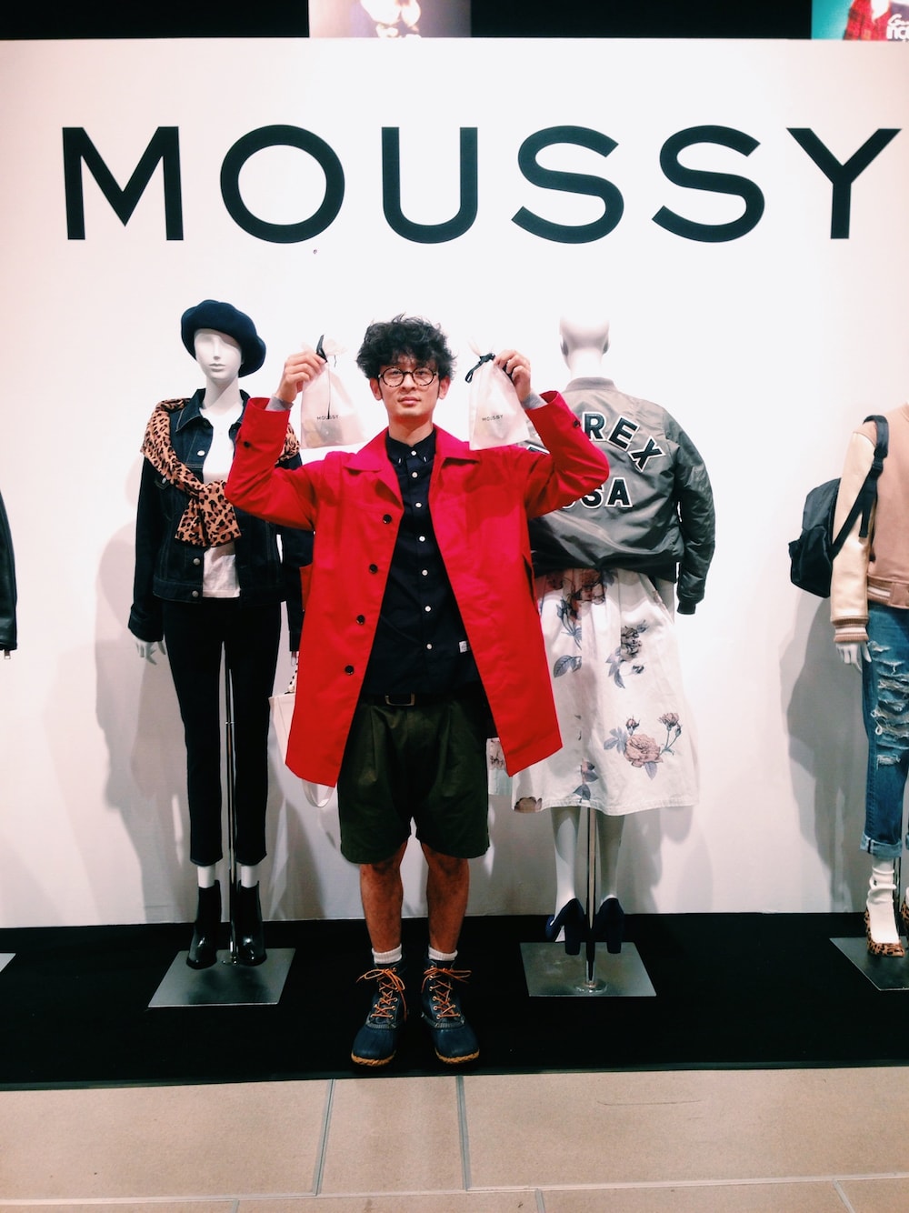 赤のコートはTimberland L.L.BEANのブーツはBEAMSの別注 MOUSSYの展示会へ行ってまいりました( ̄^ ̄)ゞ