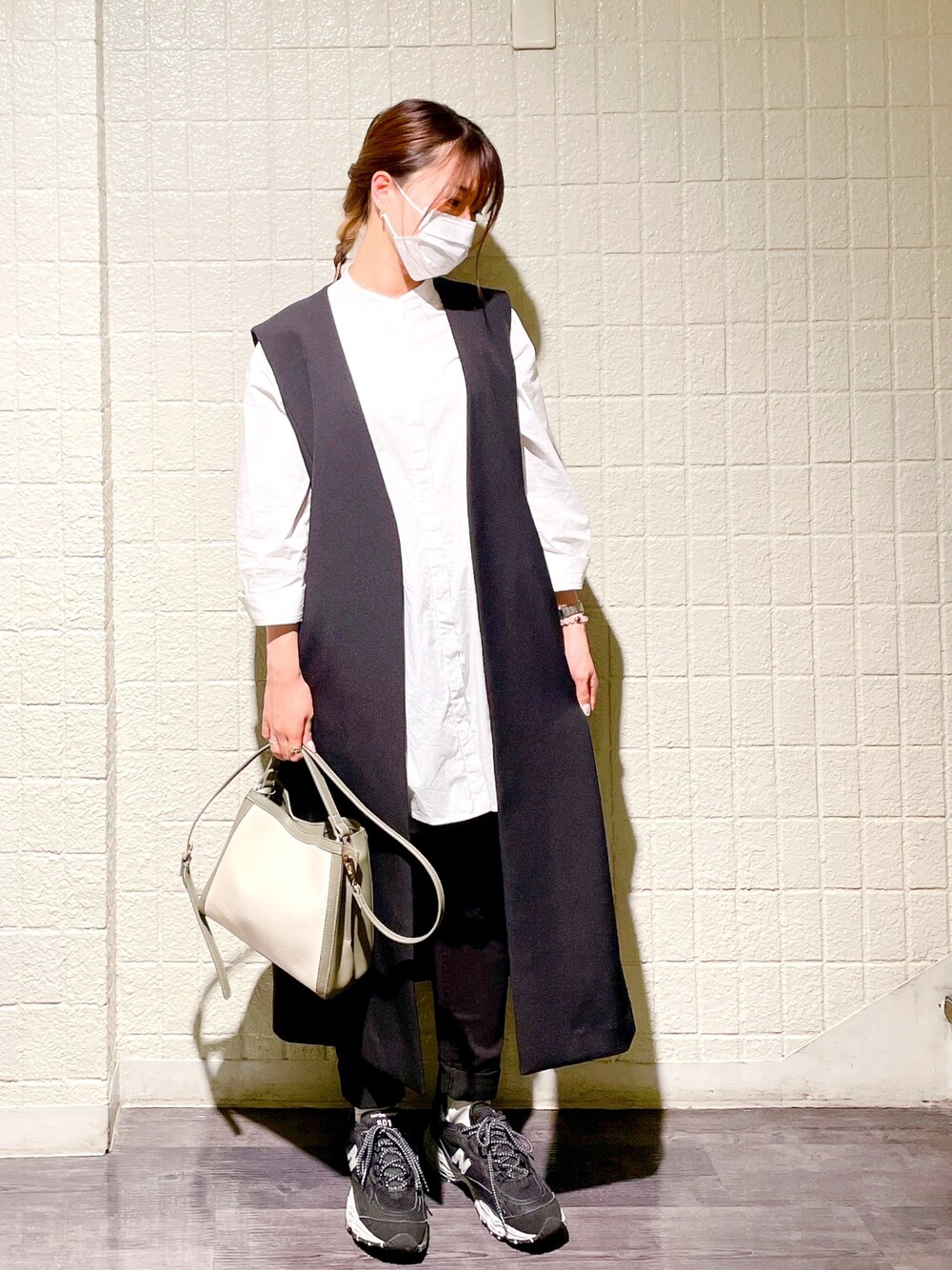大好きなEluraコーデ✨ 白のロングシャツと黒のアウターのツートーン🖤🤍