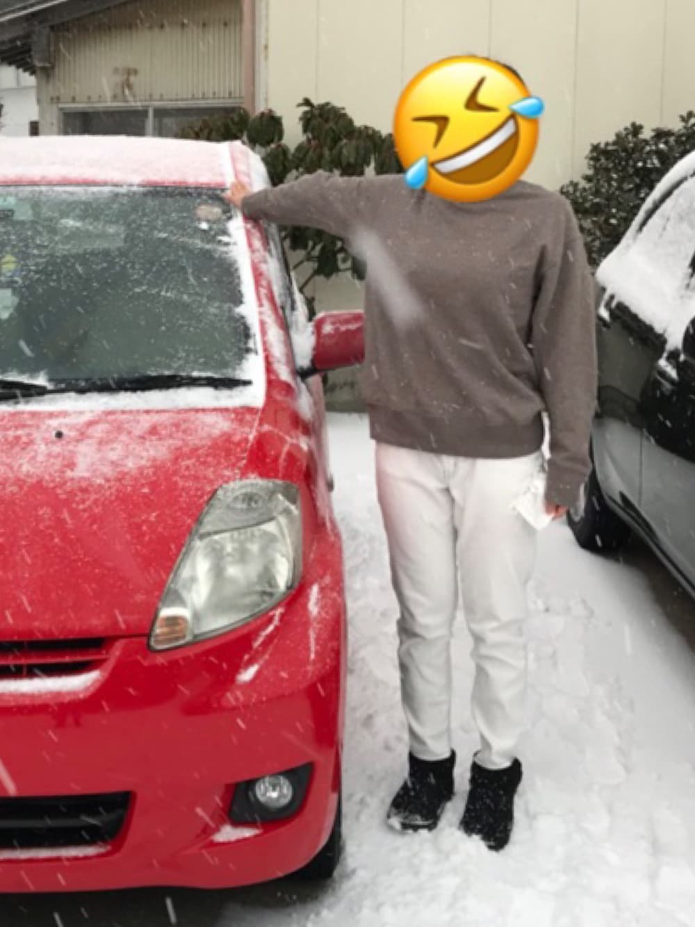 今日でお別れ、パッソちゃん(´・_・`) 寒波で雪まみれやー… トップスは大きめサイズを選んで パンツはスキニーでバランスを!