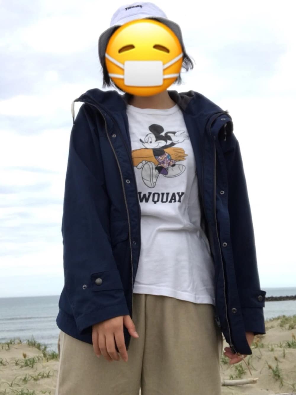 またまたお散歩中。 ちょっと肌寒いから マウンテンパーカーを羽織りました。 パンツは裾にスリットが入っていて 動きやすいです!