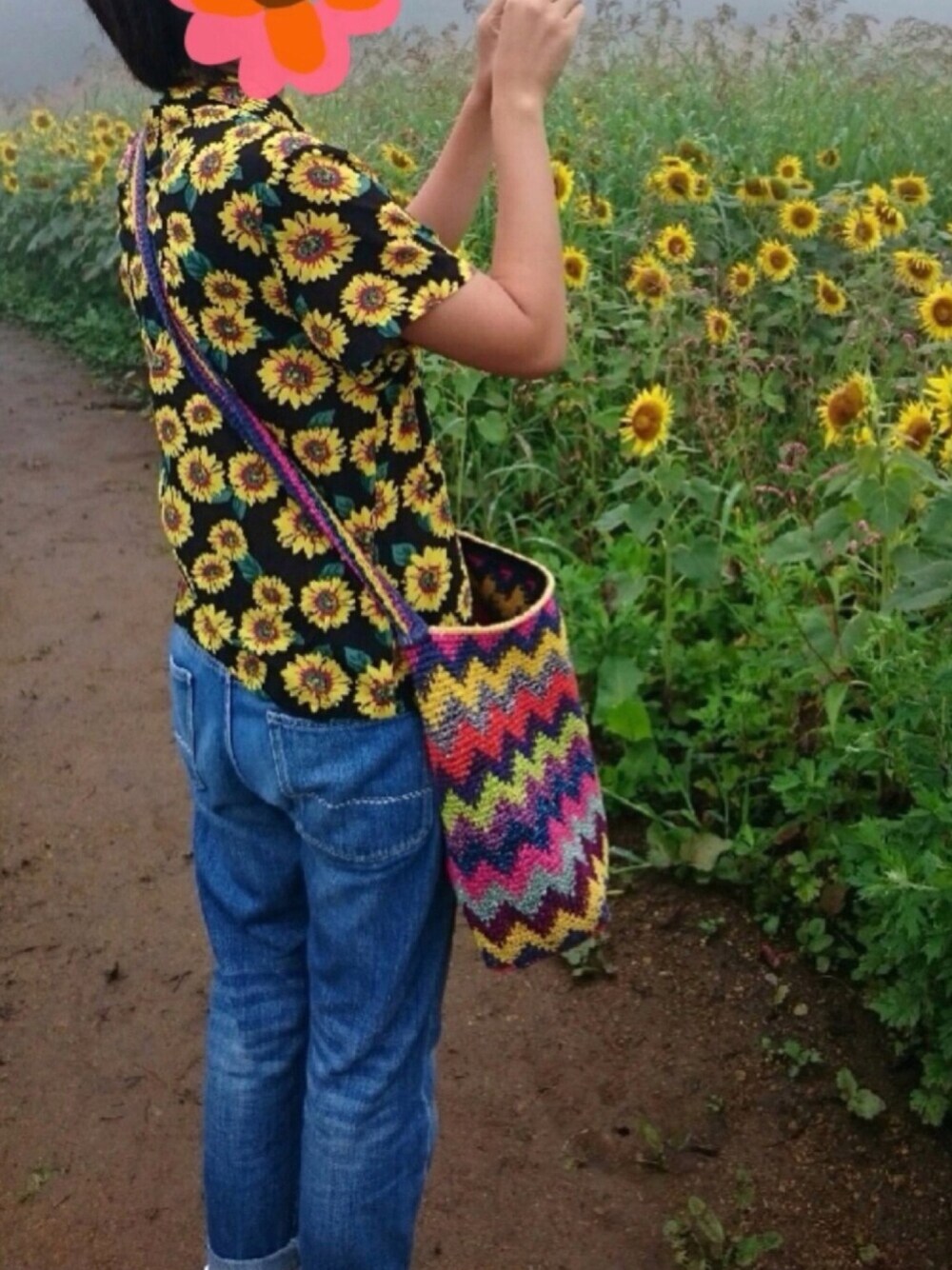 ひまわり畑にひまわり柄← シャツが派手な分、 ボトムはシンプルに!