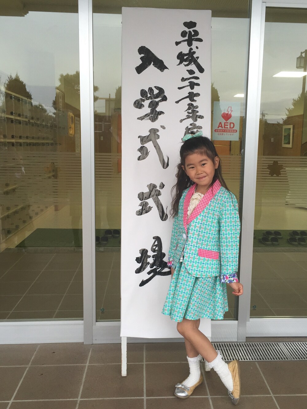 入学式! 迷ったけどこちらのコーデで(^^) 色目が明るい娘…集団の中でもすぐに見つけることが出来ました笑 市からお祝いでいただいたランドセルと黄色い帽子で、小学校度が一気に増した!!