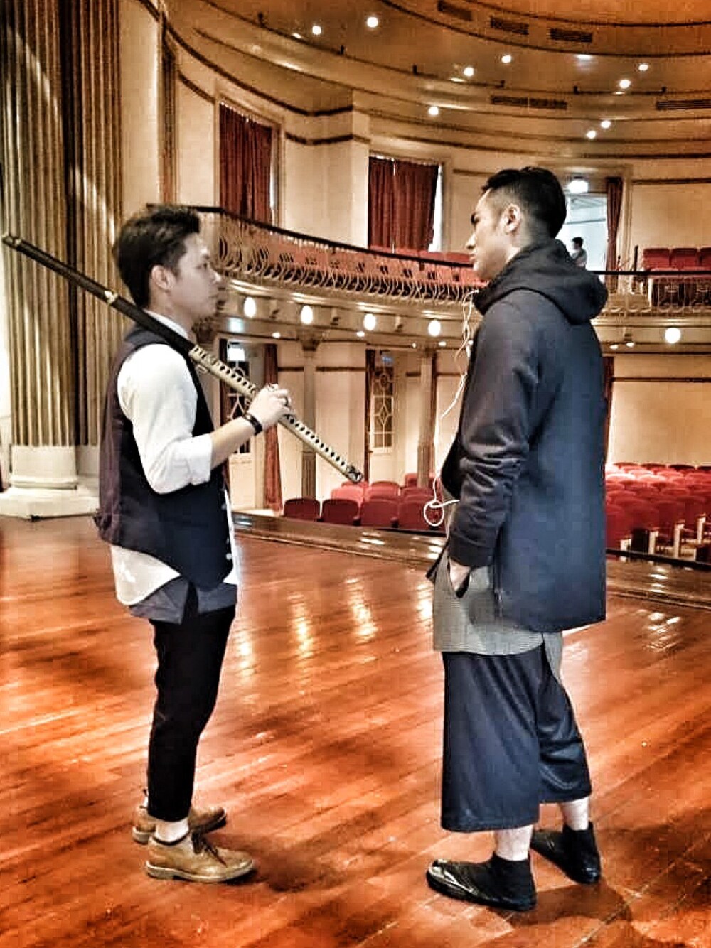 Day of fashion presentation! A fun shot discussing with model😆