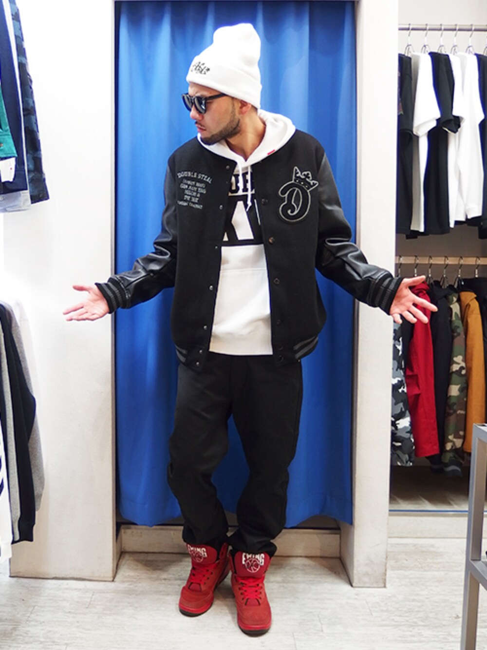 MA$SAのスタジャン「メルトンスタジャンBLACK」を使ったコーディネート