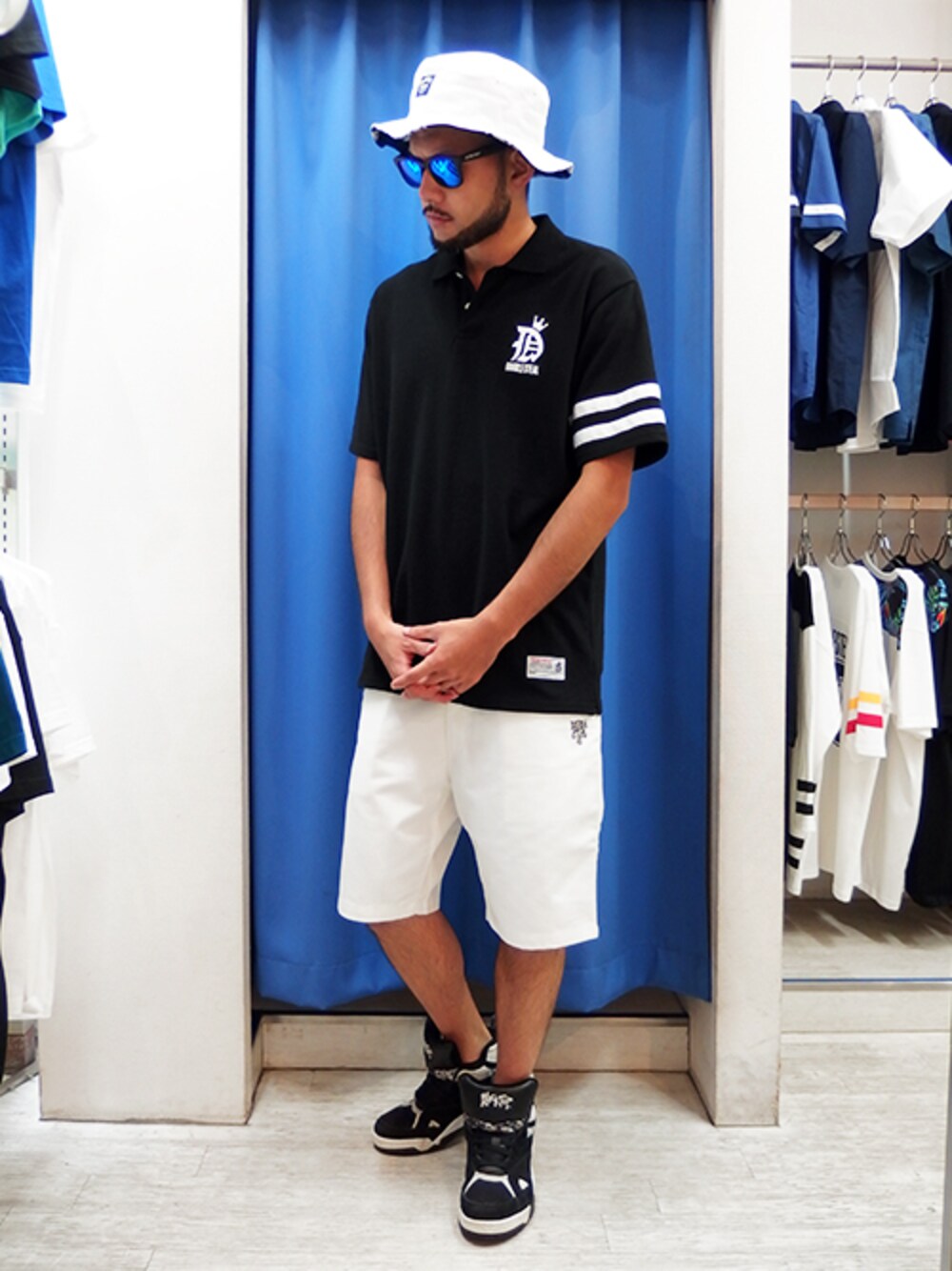 今日はポロシャツスタイルで! ゆったりめのサイジングとバケットハットで ストリートらしい着こなしに♪ モノトーンにブルーミラーのサングラスがGOOD☆ ちなみにこれ全部セール中! 売り切れる前にGETですよ!! WEARとは違うスナップをUPしてる 公式ブログや公式インスタも要チェーック☆