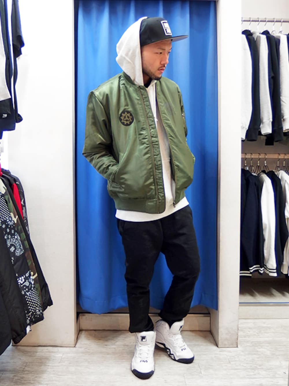 今日は寒いのでパーカーにMA-1の今どきスタイル☆ 程よいゆったり感とBBやバッシュでストリートらしく! 裏起毛&中綿で暖かさもバッチリですよ♪ WEARとは違うスナップをUPしてる 公式ブログや公式インスタも要チェーック!