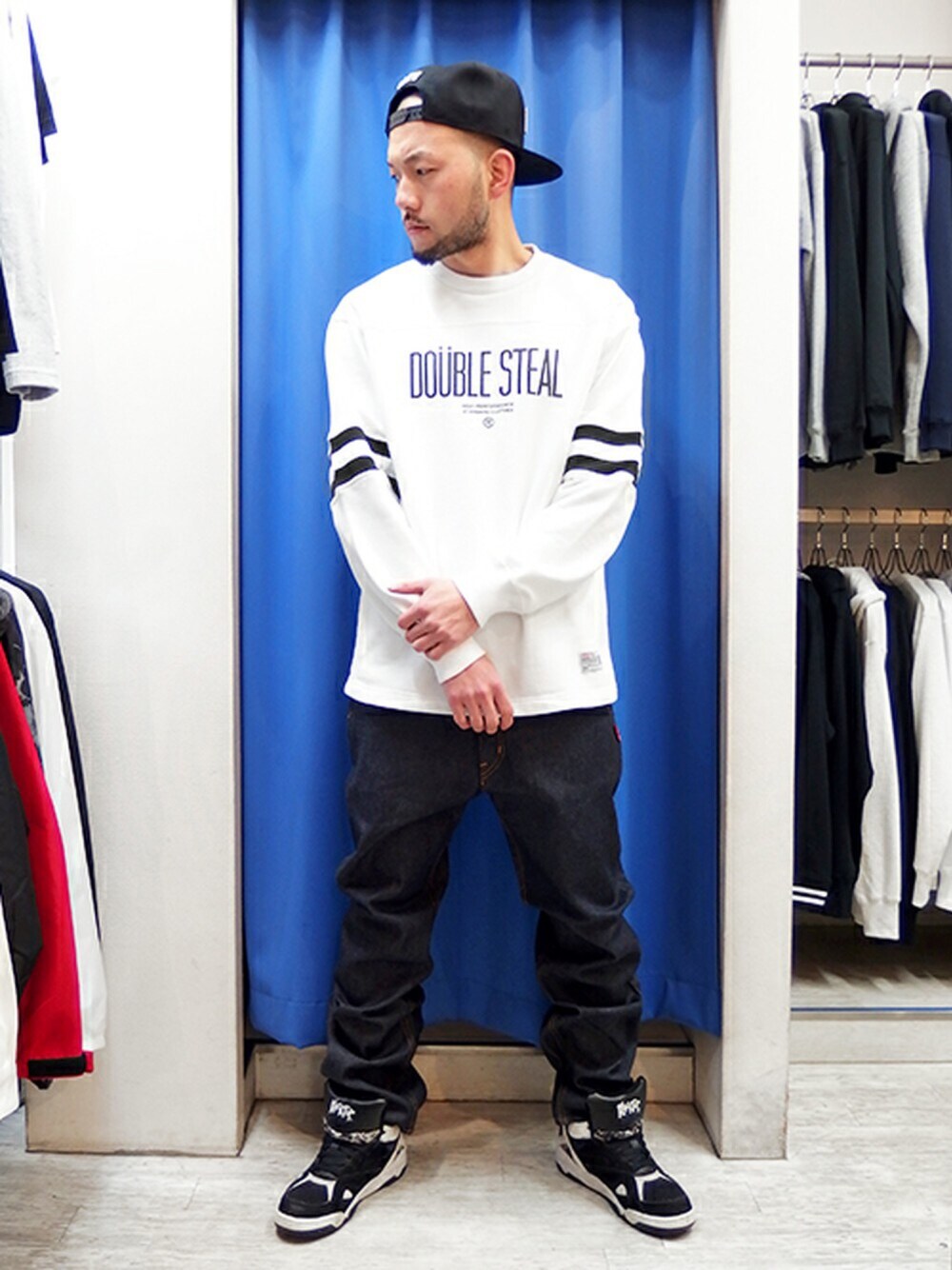 今回は裏毛クルーとナローデニムのゆったりめなコーデで ラフ&スポーティなモノトーンストリートスタイル☆ この上にアウターも羽織りやすいですし、春にもイイ感じです! キャップは2016春の新作ですよー♪ WEARとは違うスナップをUPしてる 公式ブログや公式インスタも要チェックですよー!