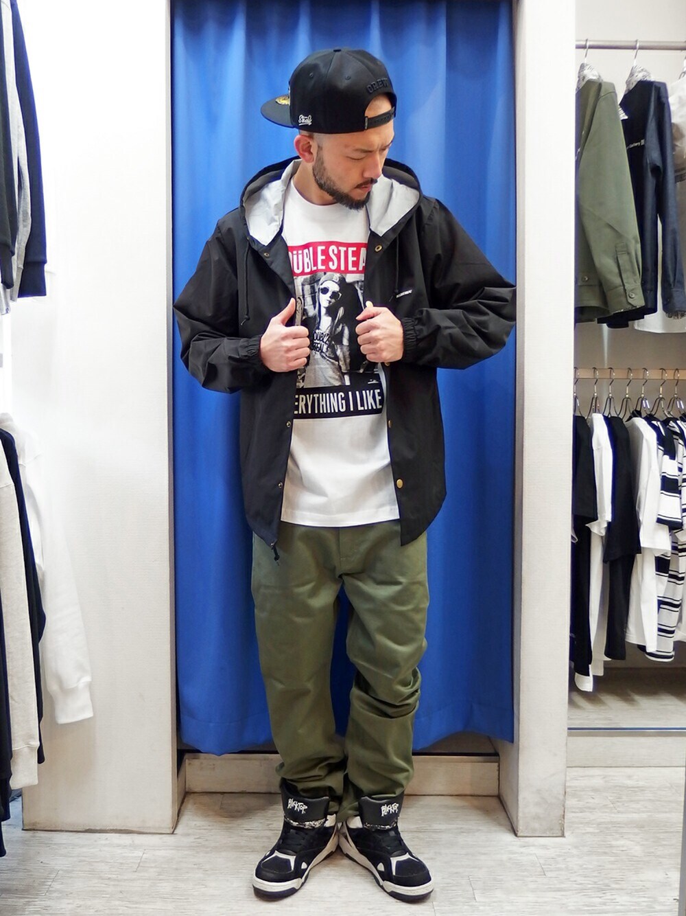 最近気になって近くを通りかかるたびに 見上げてる方も多いんじゃないでしょうか? 桜☆ もーすぐですねー♪ さてさて、頭の中はいつでも桜色な男がお送りする今回のコーデは… フォトTにカーキのナローパンツを合わせ 昼夜の気温差が激しいこの時期にピッタリな 脱ぎ着しやすいライトアウターを羽織った春ストリートスタイル☆ カーキだけどミリタリーっぽくないのがイイです♪ WEARとは違うスナップをUPしてるインスタや 小ネタ満載のブログも要チェックですよー!