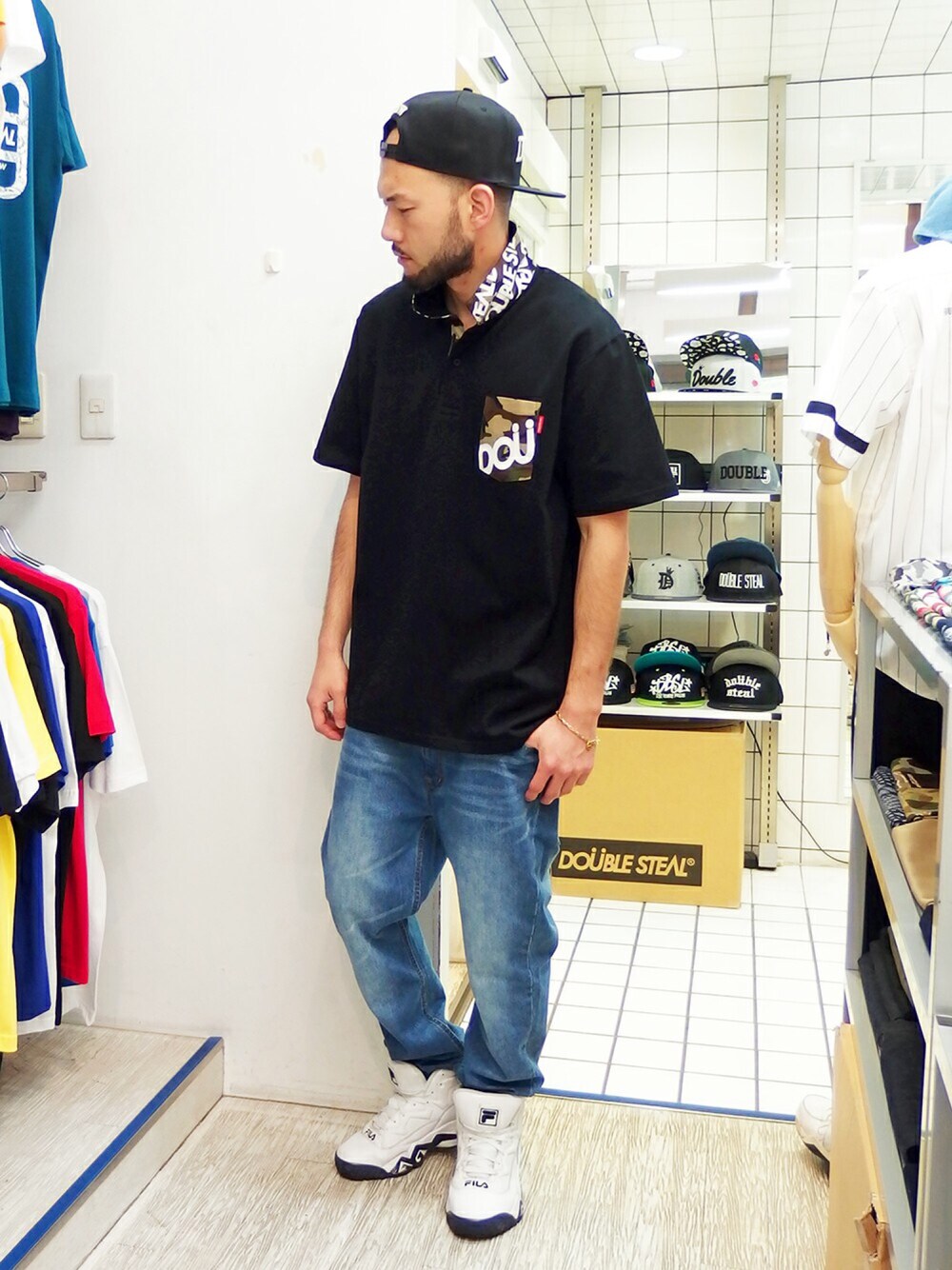 この天気のせいか 新しい海パンが欲しくなってきましたw さて今日は、 黒のポロシャツをデカめに着て 明るい色合いのヴィンテージデニムを合わせた 王道的なストリートスタイル☆ 胸ポケや衿裏の施しがイイ感じですよね~♪ ポロシャツは店頭で先行販売中! ヴィンテージデニムもめちゃくちゃ売れてますので 要チェックですよ!! ブログやインスタもお見逃しなくー!