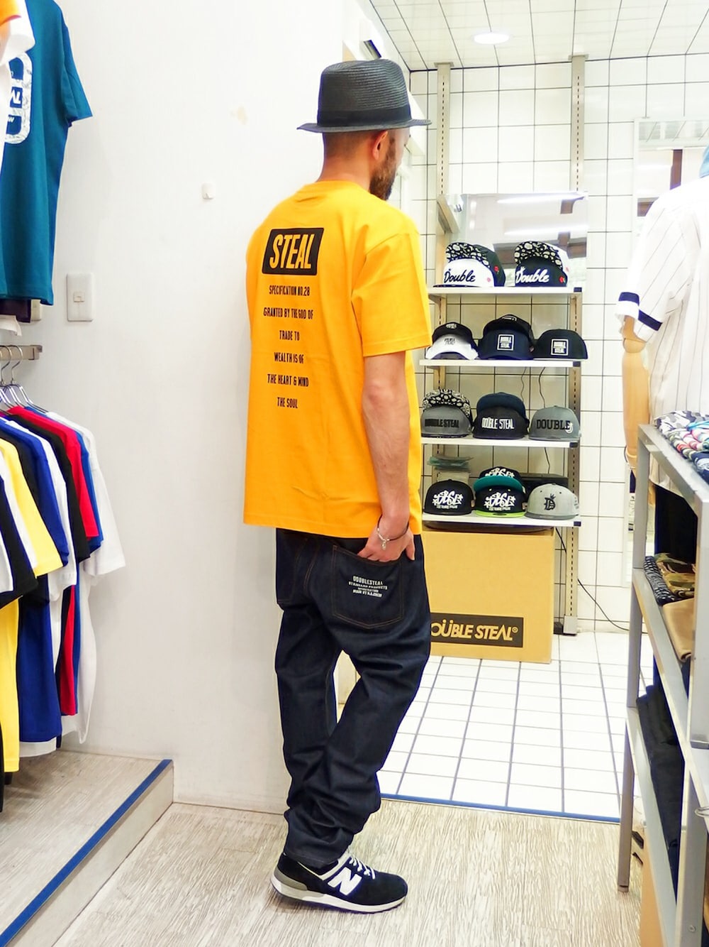 そーいえば先日カラオケに行ったときに デルーロくんの『Get Ugly』歌おうと思ったら JOYSOUNDには入ってなくてGet Uglyでした。 DAMにはあるみたいなので今度はDAMにします。 さて今日は、 濃いめのマスタードカラーがイカすTシャツに 濃紺のテーパード生デニムを合わせて 黒のストローハットを被った ちょっと大人っぽいストリートスタイル☆ 色合いがたまりませんな♪ これからの季節はカラーTも外せません! 今日はこのTシャツなどを 名古屋店のオンラインショップにUPしますので お店に来れない方は要チェックですよ! ブログやインスタもお見逃しなくー!