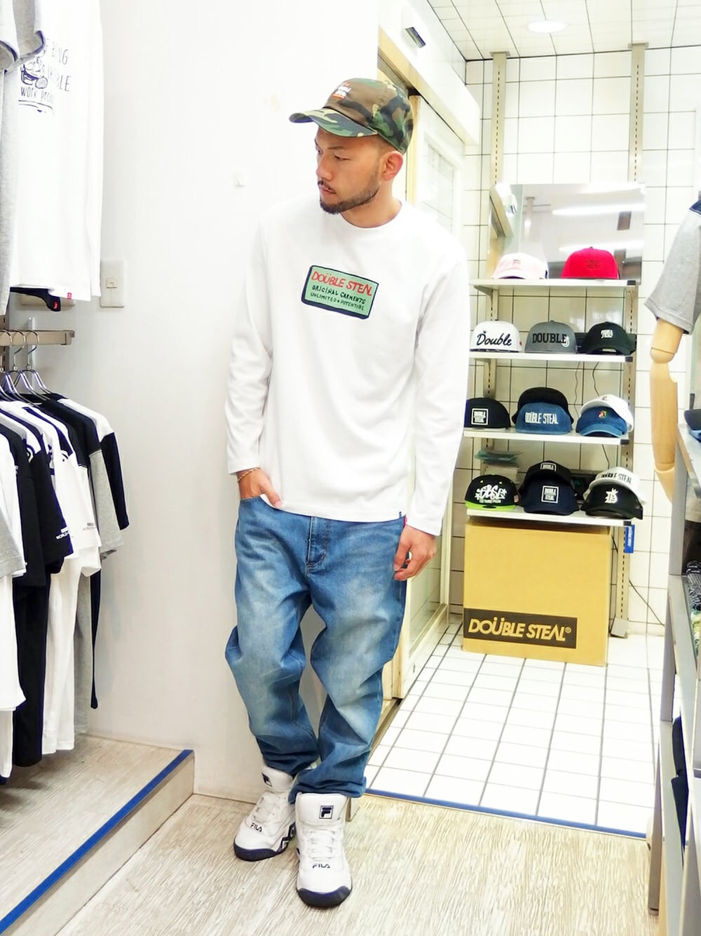 今日はZOZOでDOUBLE STEALを利用して下さってる方が お店に初めて遊びに来てくれました♪ 秋物色々入ってますのでみなさんもぜひ遊びに来てくださいね! さて今日は、 手描きのプレート風BOXがイイ感じな白のロンTをゆったり着て 色落ち具合が絶妙なテーパードウォッシュデニムを合わせた ベーシックでカジュアルチックな秋ストリートスタイル☆ 今日はこの新作ロンTなど3型をオンラインショップにUP予定ですのでお楽しみに!! ブログやインスタもお見逃しなくー!