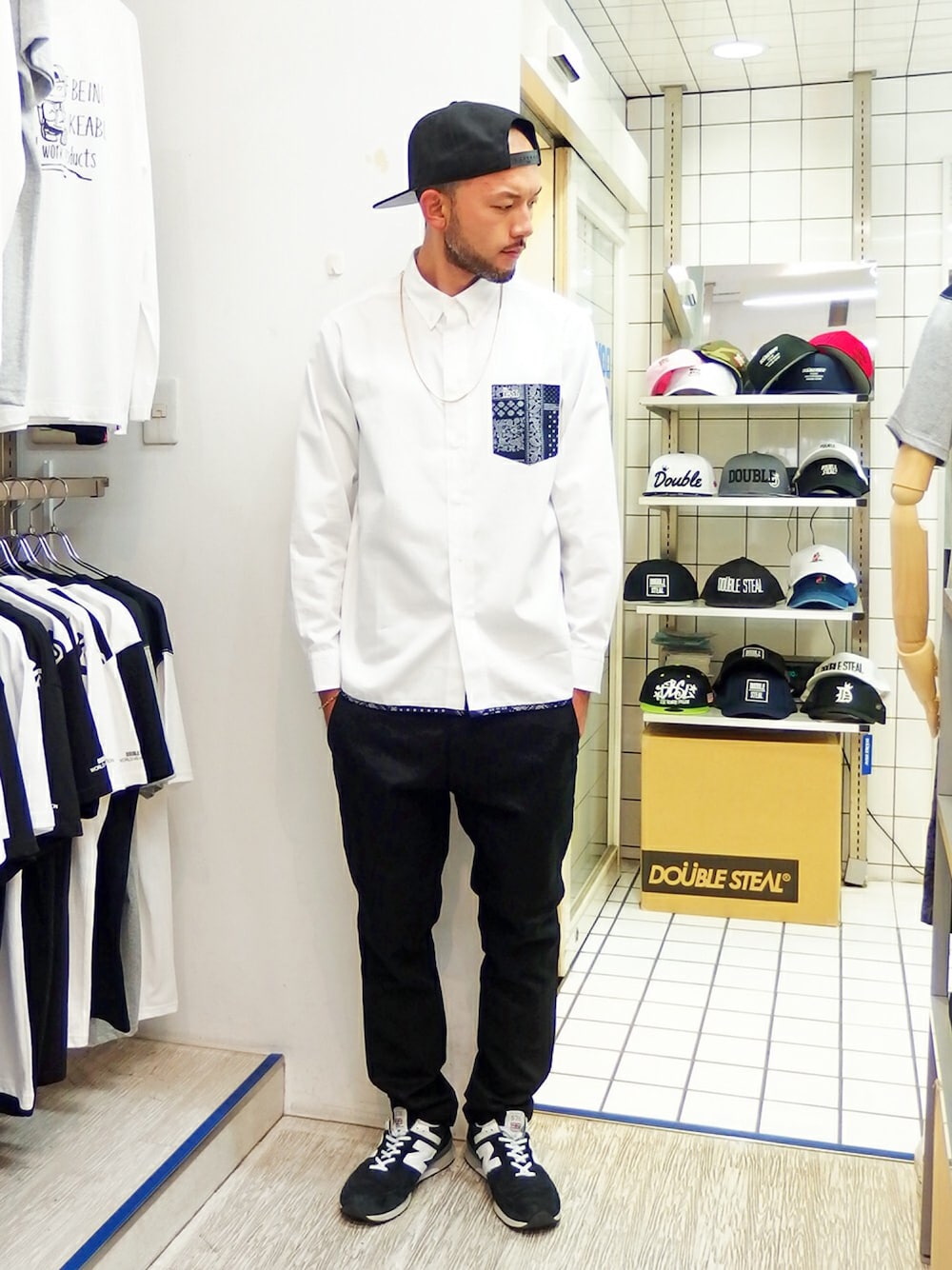 世間は3連休ですねー! 朝からお客さんが入れ代わり立ち代わりで遊びに来てくれてます♪ みなさんも秋物新作とセールをチェックしにくるっきゃないですよ! さて今日は、 ポケットや裾のバンダナ柄がイカす白シャツをジャストで着て さりげないバンダナアクセントがオシャな黒テーパードチノ合わせた オシャレで大人な秋ストリートスタイル☆ 今日はこのネックレスなど3型をオンラインショップにUP予定ですのでお楽しみに!! ブログやインスタもお見逃しなくー!