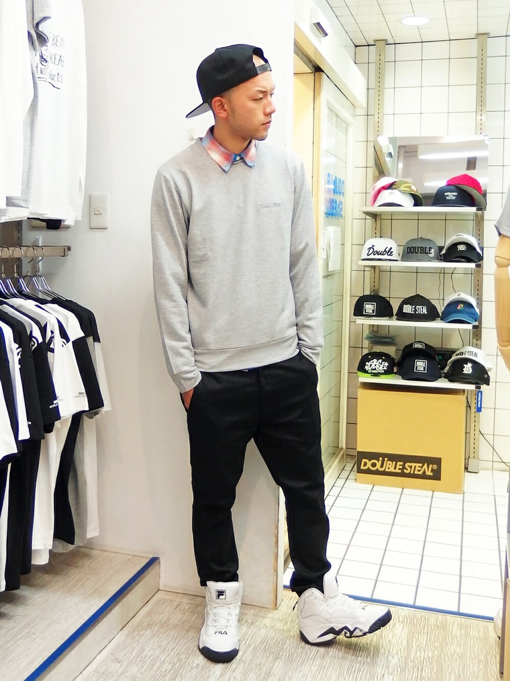 みなさん気づきました? はい、ヒゲが無くなりましたw さて今日は、 色合いと柄の具合がイイ感じなチェックシャツの上に 薄手&シンプルで使い勝手抜群なグレーのトレーナーを羽織って さりげないペイズリーがイカす黒のテーパードパンツを合わせた キレイめ秋ストリートスタイル☆ このトレーナー大人気ですしシャツはセール中ですので気になった方はお早めに!! ブログやインスタもお見逃しなくー!