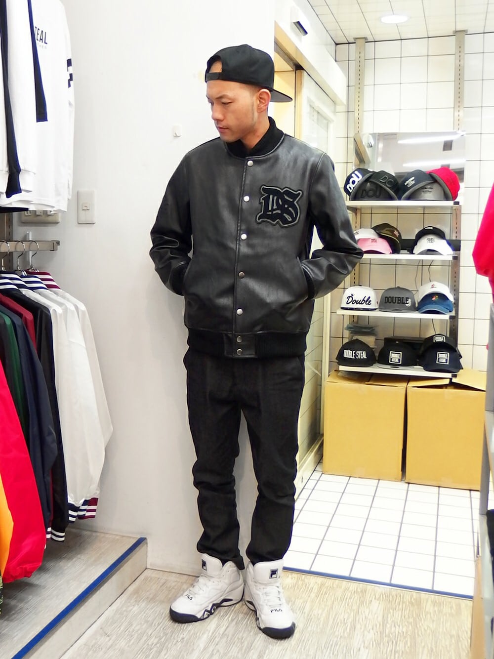 今日も良い天気で暖かいですが店頭には冬アウターが到着! お近くの方は今後のためにぜひ生チェックしに来てくださいね♪ さて今日は、 オールレザーにワッペンや刺繍がイカすブラックのレザースタジャンを羽織り さりげないバンダナ柄アクセントがイイ感じなブラックのテーパードデニムを合わせた クールでワンランク上なブラックストリートスタイル☆ このスタジャンは入荷したての最新作です♪ 店頭で先行販売中ですのでお店に来て先取りするっきゃないですよ!! ブログやインスタもお見逃しなくー!