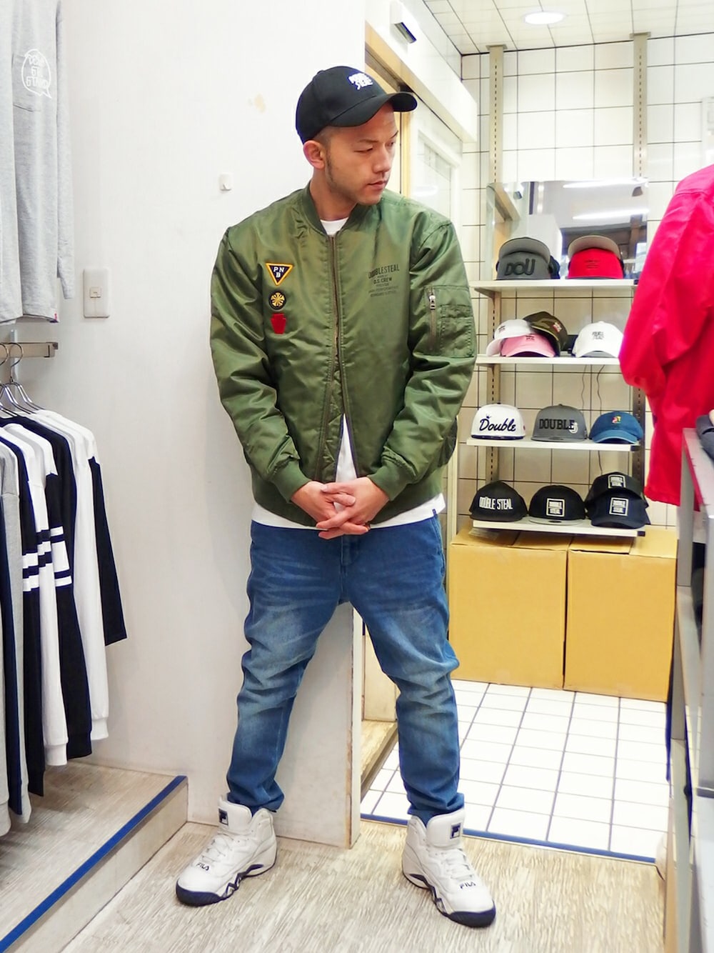 チャンピオンズカップ当たったのでアウターを買い足そうと思ってます♪ さて今日は、 レトロなデザイン&シルエットがイカすカーキのMA-1を羽織って 色落ち具合が絶妙なインディゴのテーパードデニムを合わせた 80'sアメリカンなストリートスタイル☆ 今日はこのアウターなど3型をオンラインショップにUP予定ですのでお楽しみに! ブログやインスタもお見逃しなくー!