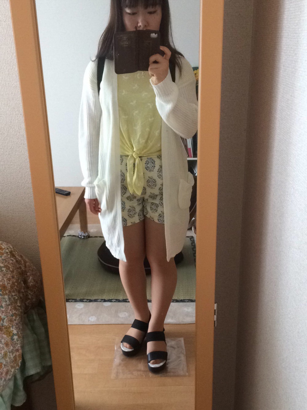 最近また寒くなってきたので久しぶりにカーディガンを着ました! 体型カバーもできて良いです✩ 黒の靴とリュックで締めました!