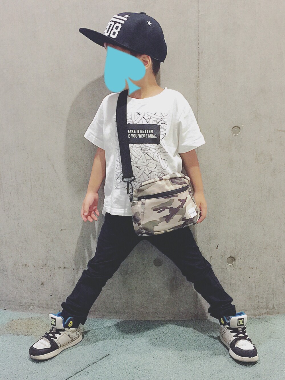 長男コーデ♡ 次男と服が着回せるありがたみᐠ( ᐝ̱ )ᐟ笑 黒パンツで合わせてみて、 カバンは雑誌の付録ですが 本人はお気に入りだそうです☺︎