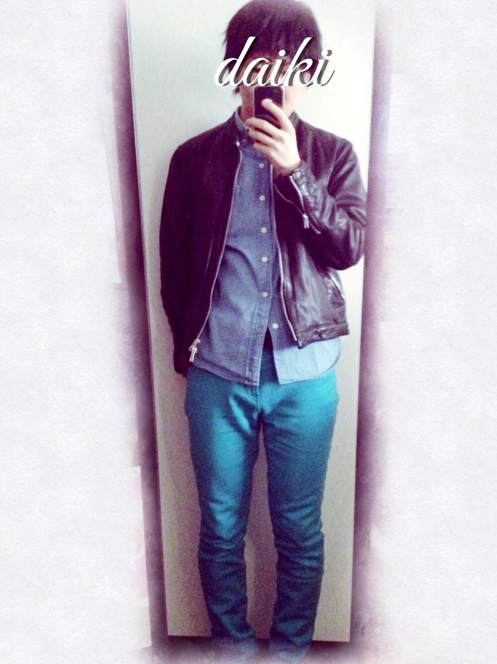 [item] ・ライダースジャケット:BEAUTY&YOUTH UNITED ARROWS ・シャツ:RAGEBLUE ・パンツ:nano・universe やっと確定申告終わりました~! マジでしんどかったです(^_^;) そんなことは別にいいんですが、 今日は春っぽくターコイズのパンツ履いてみました。 (僕の住んでる北海道は、まだまだ寒くて春らしさの欠片もないですが…) 上は黒のライダースでシンプルに。 はやく暖かくなって欲しいです…