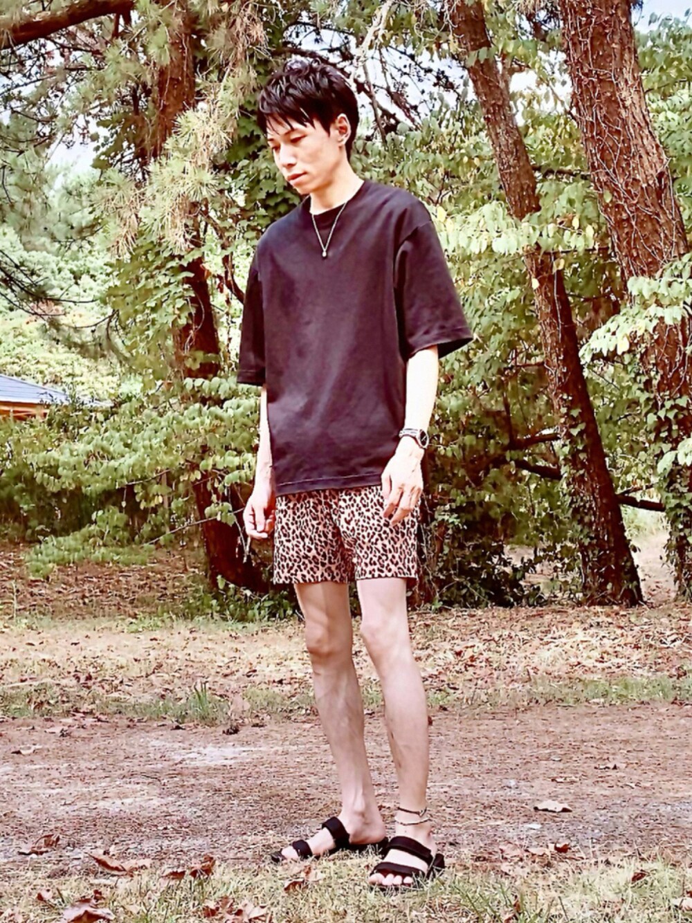 レオパード柄パンツなのでシンプルに黒で合わせました。 パンツは水陸両用でストレッチ効いて履き心地抜群です。