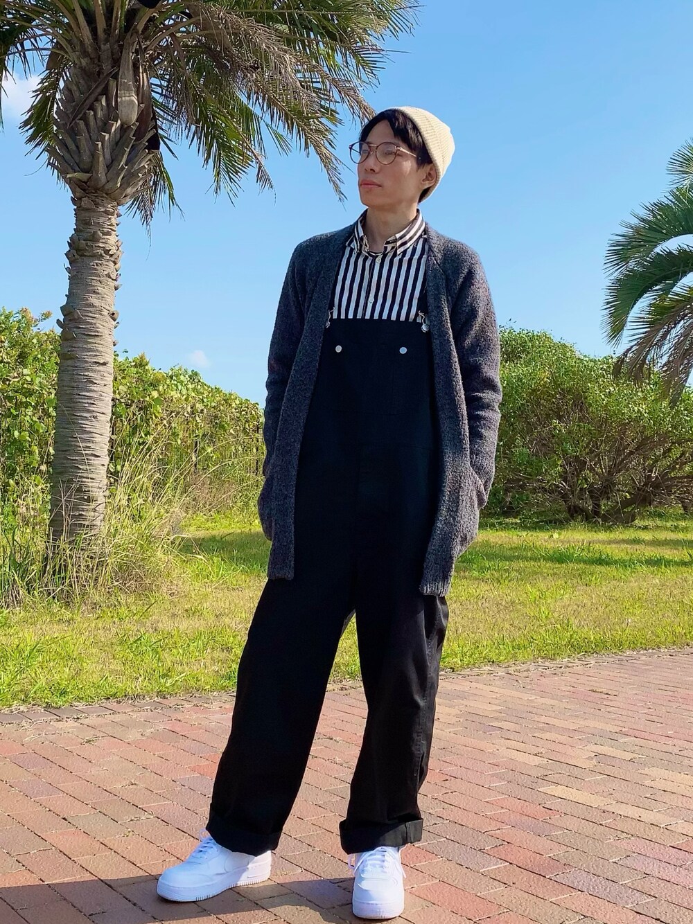 オーバーオールonロングカーディガン 白黒系統のまとめ 住まいは南国ではありません🌴
