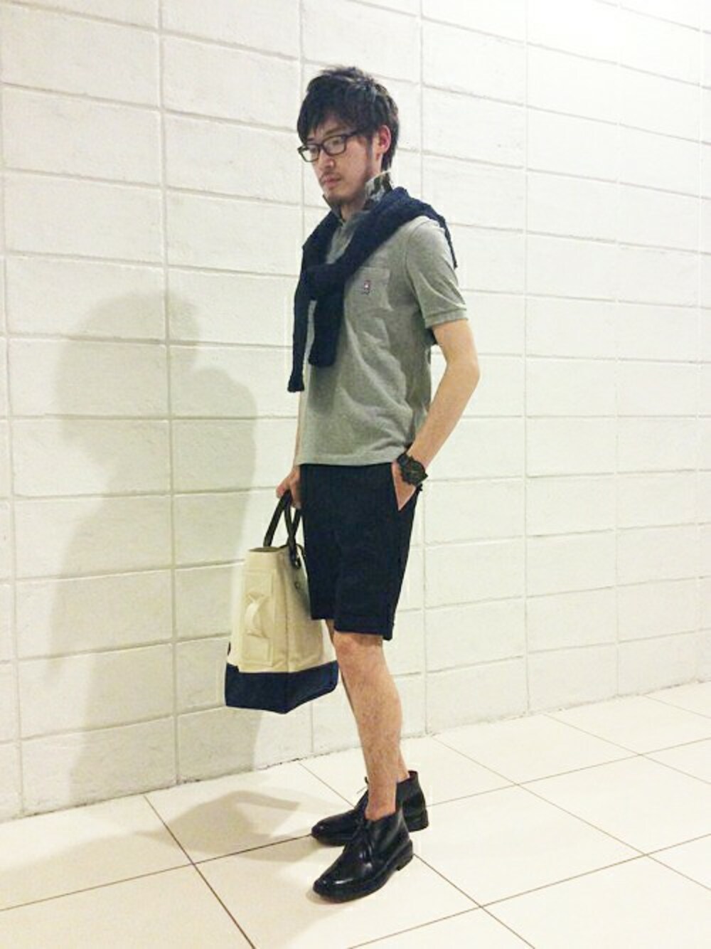 迷彩柄が目を引くDUFFER×PSYCHO BUNNYの新作ポロ。 革靴をチョイスすることによりショーツで合わせても程よく締まった印象に。 パイル生地のカーディガンを肩から巻いてリラックス感も取り入れた スマートカジュアルでまとめてみました。