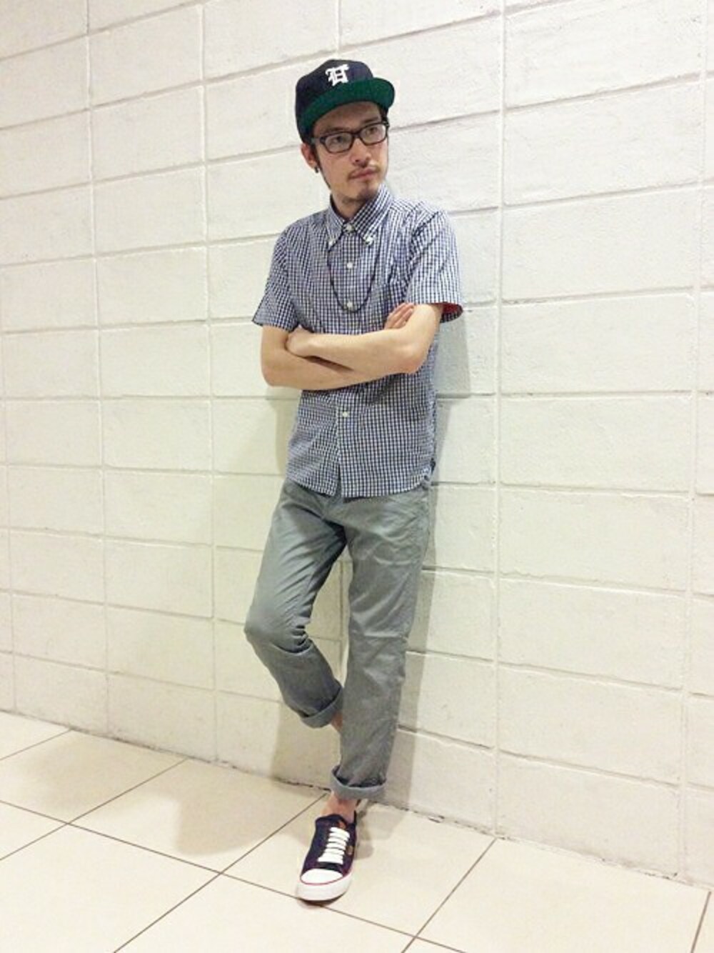 ギンガムチェックにライトグレーのスリムなパンツでそのまま合わせればきれい目コーディネートですが、 CAPやスニーカーを合わせればベーシックなアイテムも小物使い一つでガラッと印象を変えられます。 夏は軽装になるので、新たなスタイリングにもチャレンジしやすいですね。