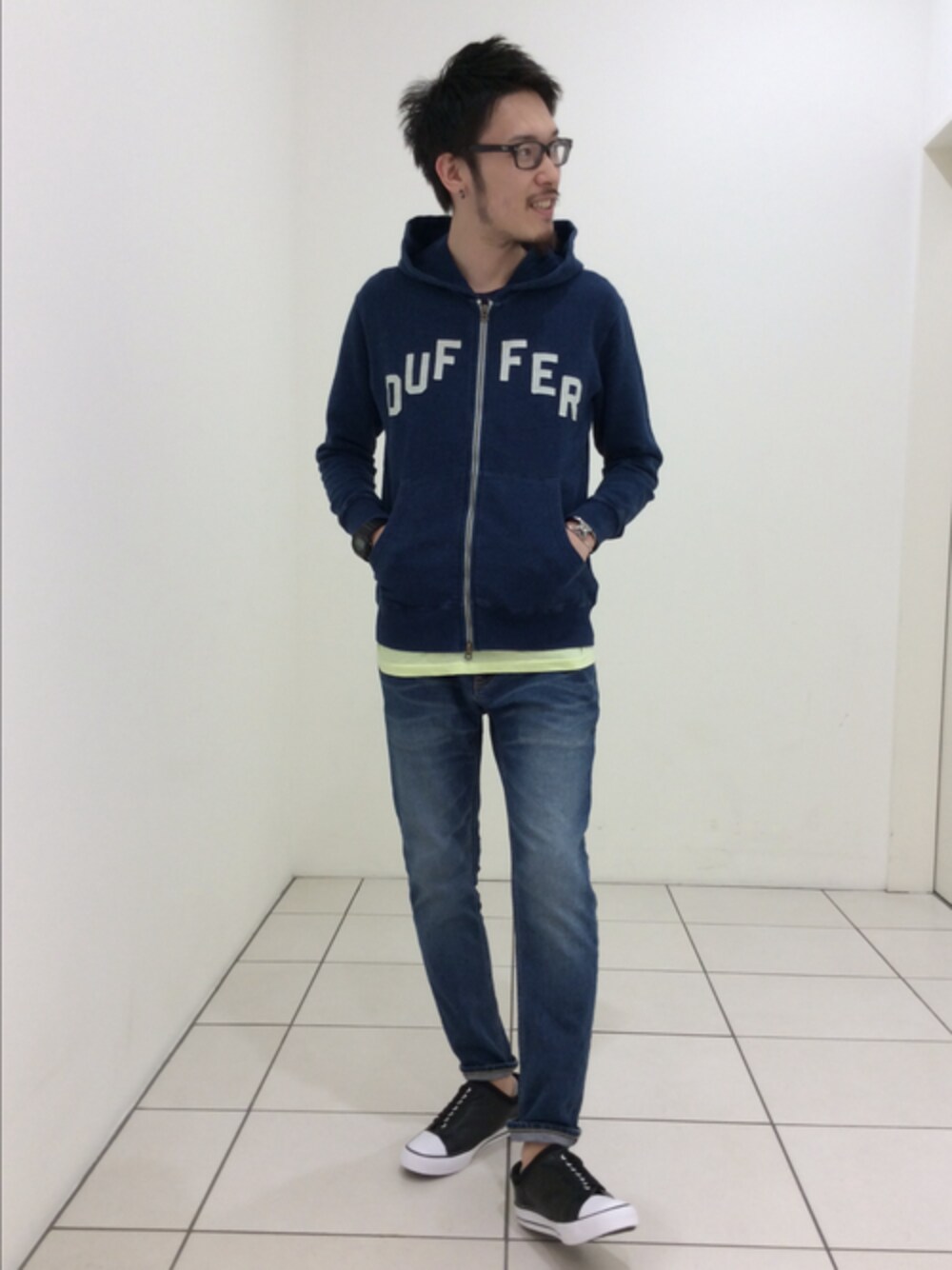 Masaaki Moriのパーカー「"DS11" DUFFER LOGO INDIGO PARKA:ロゴパーカー」を使ったコーディネート
