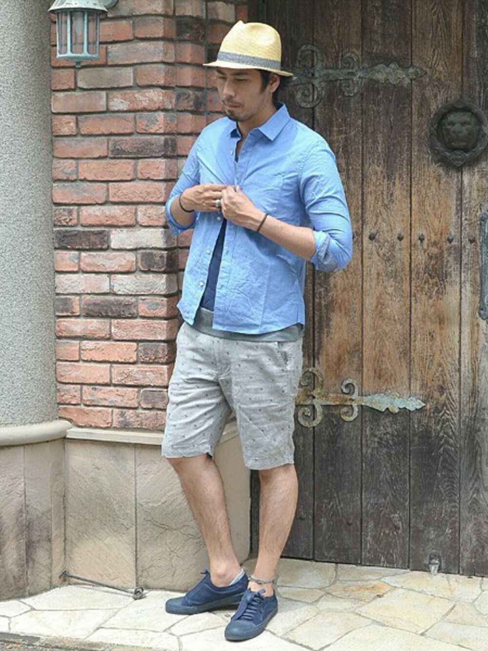 ショーツ×シャツは相性良く、 鉄板のコーディネート。 統一感のあるカラーでまとめています。