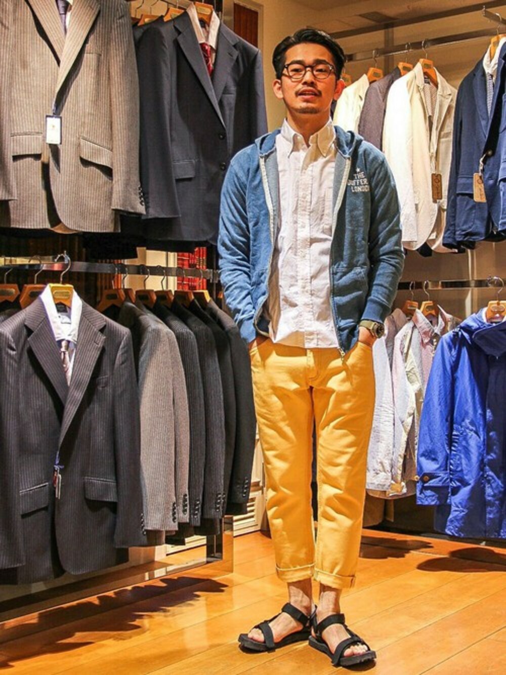 もう夏まで待てない!そんな方の為にカラーパンツとサンダルを用意しましたwww でも、ここはビジネスマンの聖地、丸の内。きちんと感も必要なのでシャツは欠かせません。 こんな格好してなんですが、新丸ビル店には、スーツもたくさん取り揃えております。東京駅にお立ち寄りの際は、ぜひ。