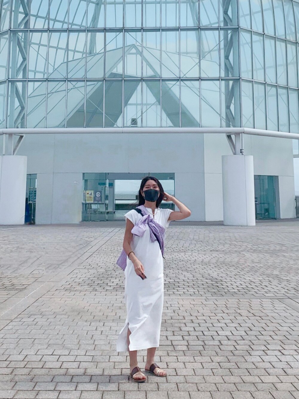 海辺のお洒落なカフェレストランで、他のお客さんのお姉さんがこんな感じの着てて、いいなあと思って格好真似した❤︎
