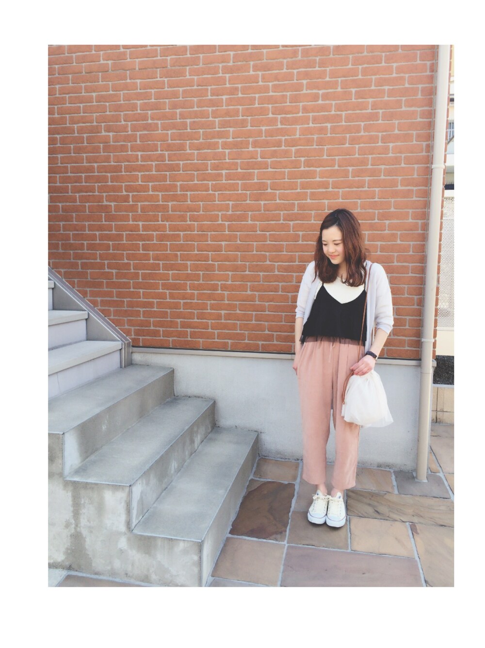 happy holiday !!! 今日はお休みで、祖母が遊びに来てくれました😊♪♪ 一緒に上野公園の桜を見に🌸👭 チューハイ、ビール片手にたこ焼き、鮎の塩焼き、おでん、などなど〜 いっぱい食べれて満足😋💕 桜も満開でほんとに素敵でした✨✨ 今日のコーデは、全身flower(*´艸`*)♡♡ ブラックのチュールがヒラヒラのキャミソールにピンクのパンツでガーリーさを💓 足元はコンバースで、決めすぎずラフ感〜〜♪ カジュアル、ガーリーな感じがほんと好き!! 明日も仕事!! 頑張るゾーー!!!!!