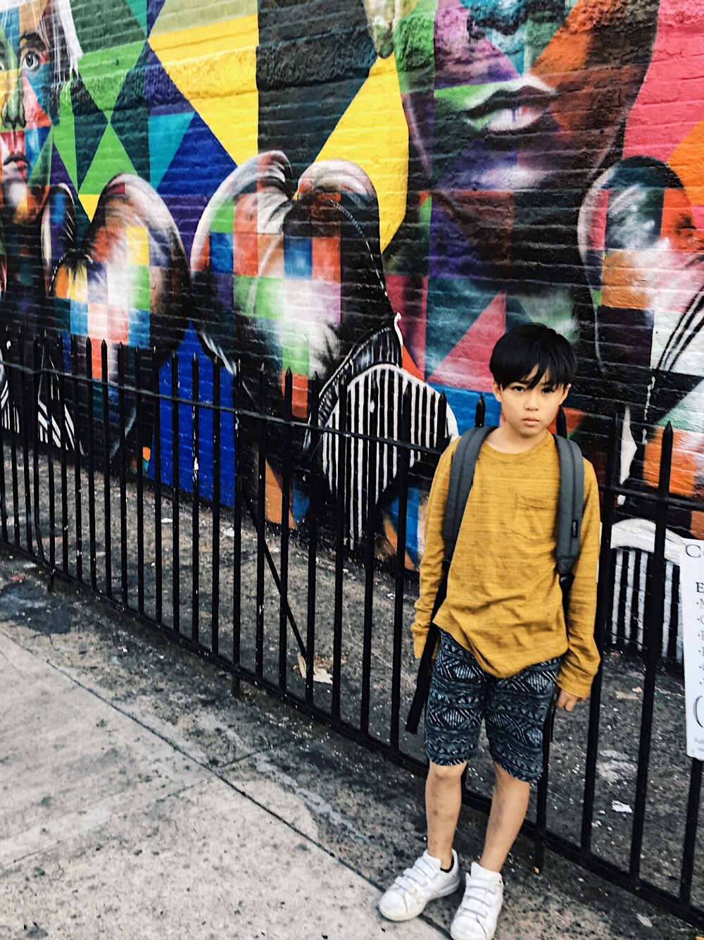 今日はwilliamsburgのMidoriyaさん(ブルックリン唯一の日本のスーパー)に息子とお買い物。バスキアとウォーホルと3ショット。NYも涼しくなってきました。