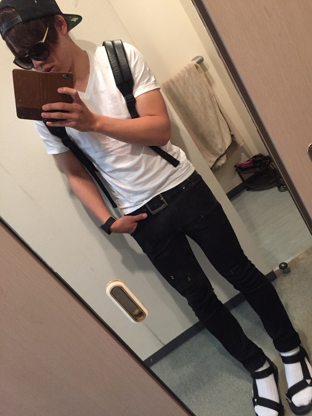 シンプルに白Tシャツ 最近白Tシャツに目がない(*_*)♪ それにしてもスマートに着痩せをモットーにしとるのに 半袖着たら身体に比べて腕だけ筋肉質で太いのが強調されて(太って?)見えるのがいやなところ笑っ こう見えて握力64あります‥‥夏の悩みですな笑っ
