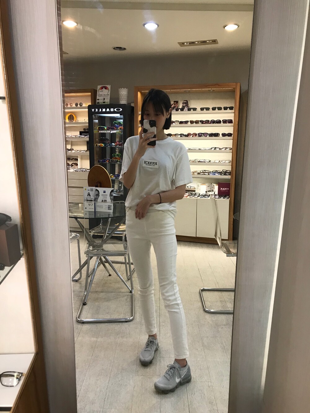ホワイト系のTシャツ/カットソー、ホワイト系のシューズを着用したレディースの春コーディネートの1枚目の写真