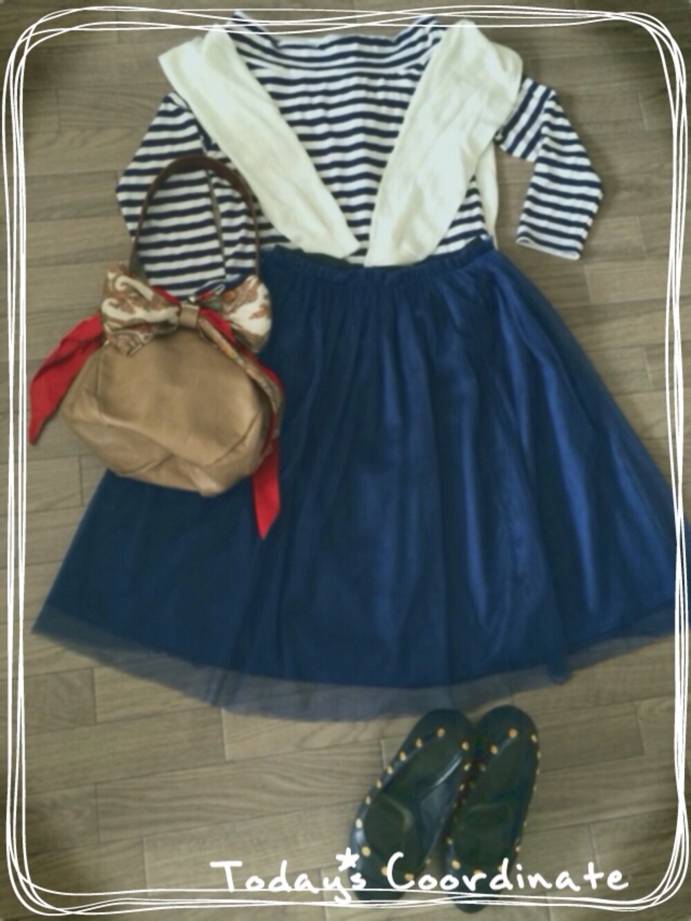 今年流行りのオフショルダーと フレアスカートで春コーデ。