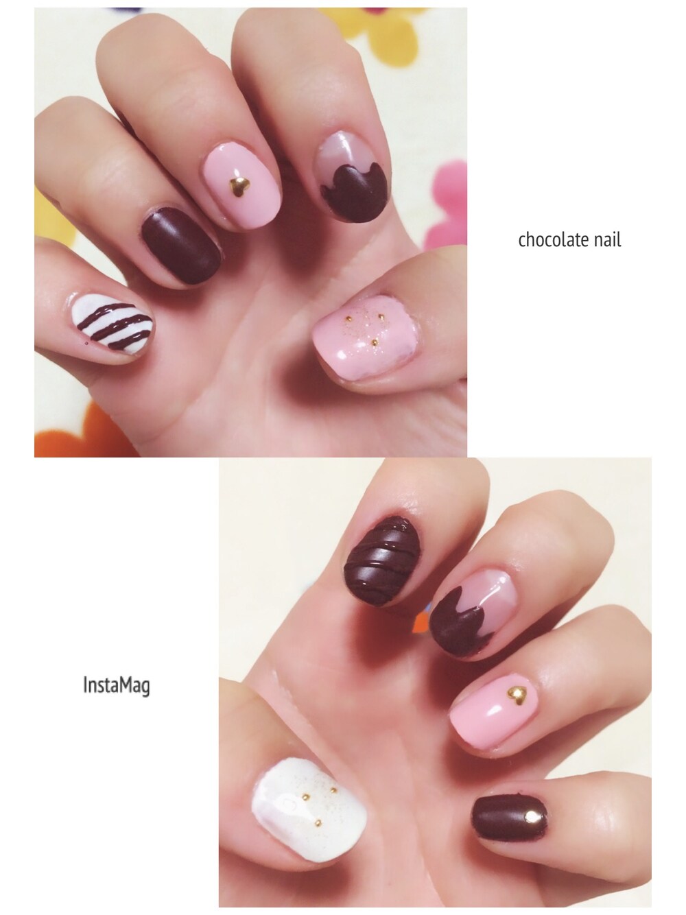 new nail! リアルなチョコを目指しました🍫 スタッズはハート♡ しかし何回練習してもワンカラーがムラになってしまう、、