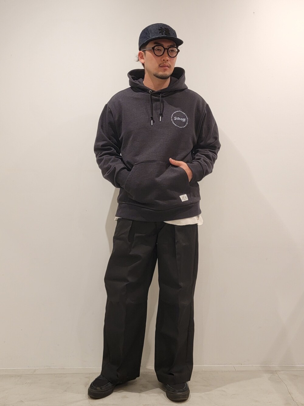 今野太那(Schott Grand Store Tokyo店)のパーカー「Schott/ショット/MESSAGE GRAPHIC HOODIE/メッセージ グラフィック フーディー」を使ったコーディネート