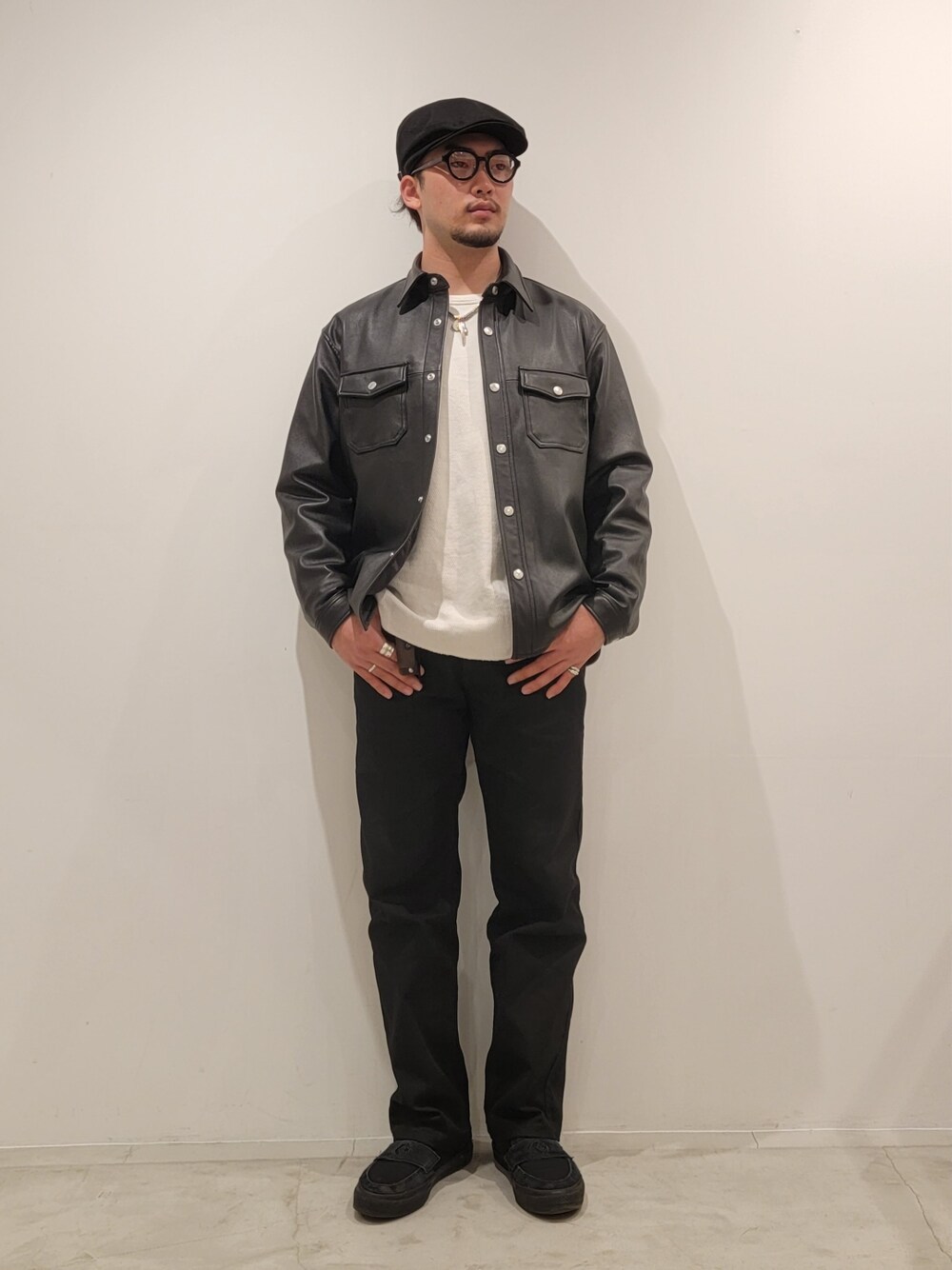 今野太那(Schott Grand Store Tokyo店)のライダースジャケット「Schott/ショット/LAMB LEATHER CPO SHIRT/CPO ラムレザーシャツ」を使ったコーディネート