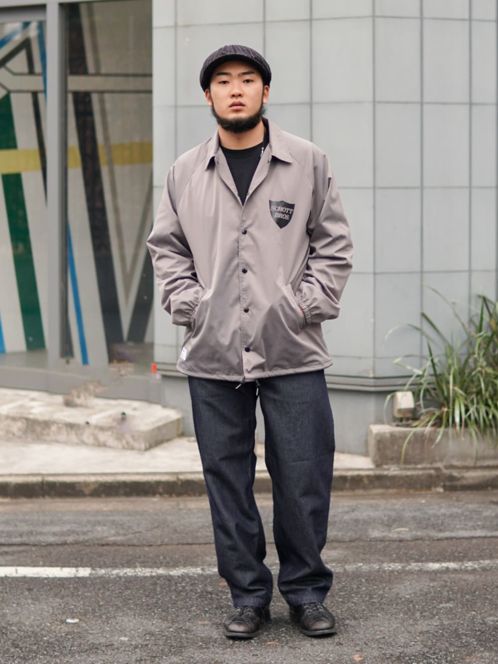 今野太那(Schott Grand Store Tokyo店)のナイロンジャケット「Schott/ショット/COATCH JACKET "$110 PATTERNED LINING" /コーチジャケット"$110パターンライニング"」を使ったコーディネート
