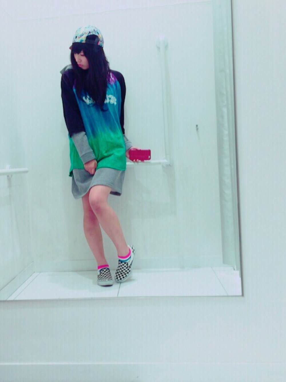 GUのパーカーワンピに大きめStussy ミシカのキャップにVANSのスリッポン