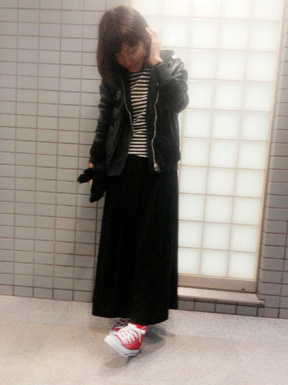 来てくださって ありがとうございます🙌 日が落ちてから📷したので画像いつにも 増して悪すぎですね😂 が赤のコンバースが 届いてうきうきだったのでアップしちゃいました笑 ボーダー×モノトーン×赤🎶
