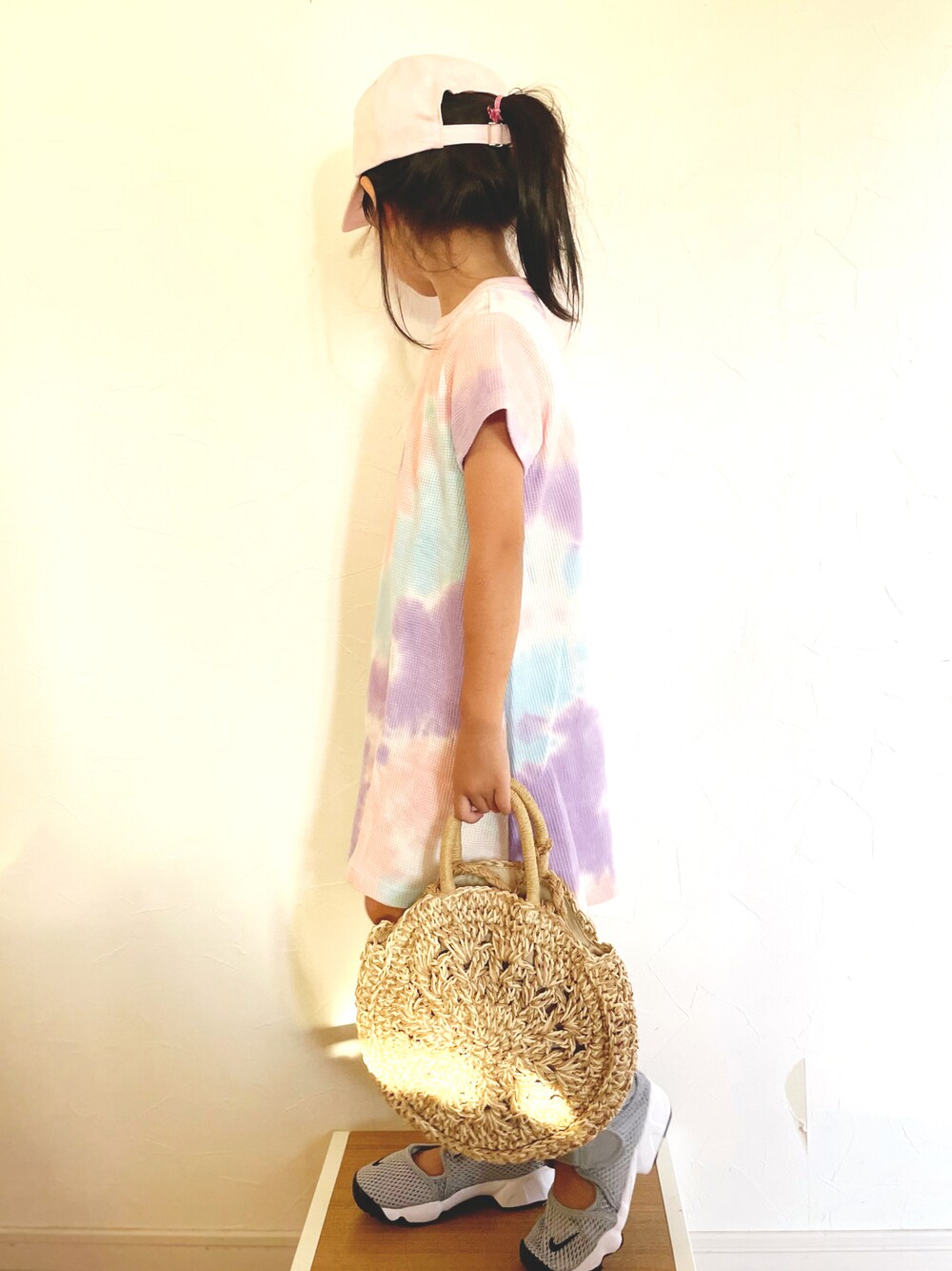 maakeeのワンピース「キッズ タイダイワッフルAラインワンピース」を使ったコーディネート