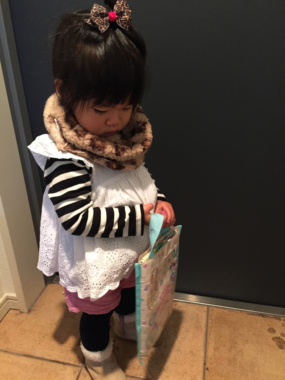 ♡、見ていただきありがとうございます(*^^*)✨ ダイソーで見つけたネックウォーマを使ってみましたぁ🎶 イヤイヤされながも、誤魔化し誤魔化し…😂