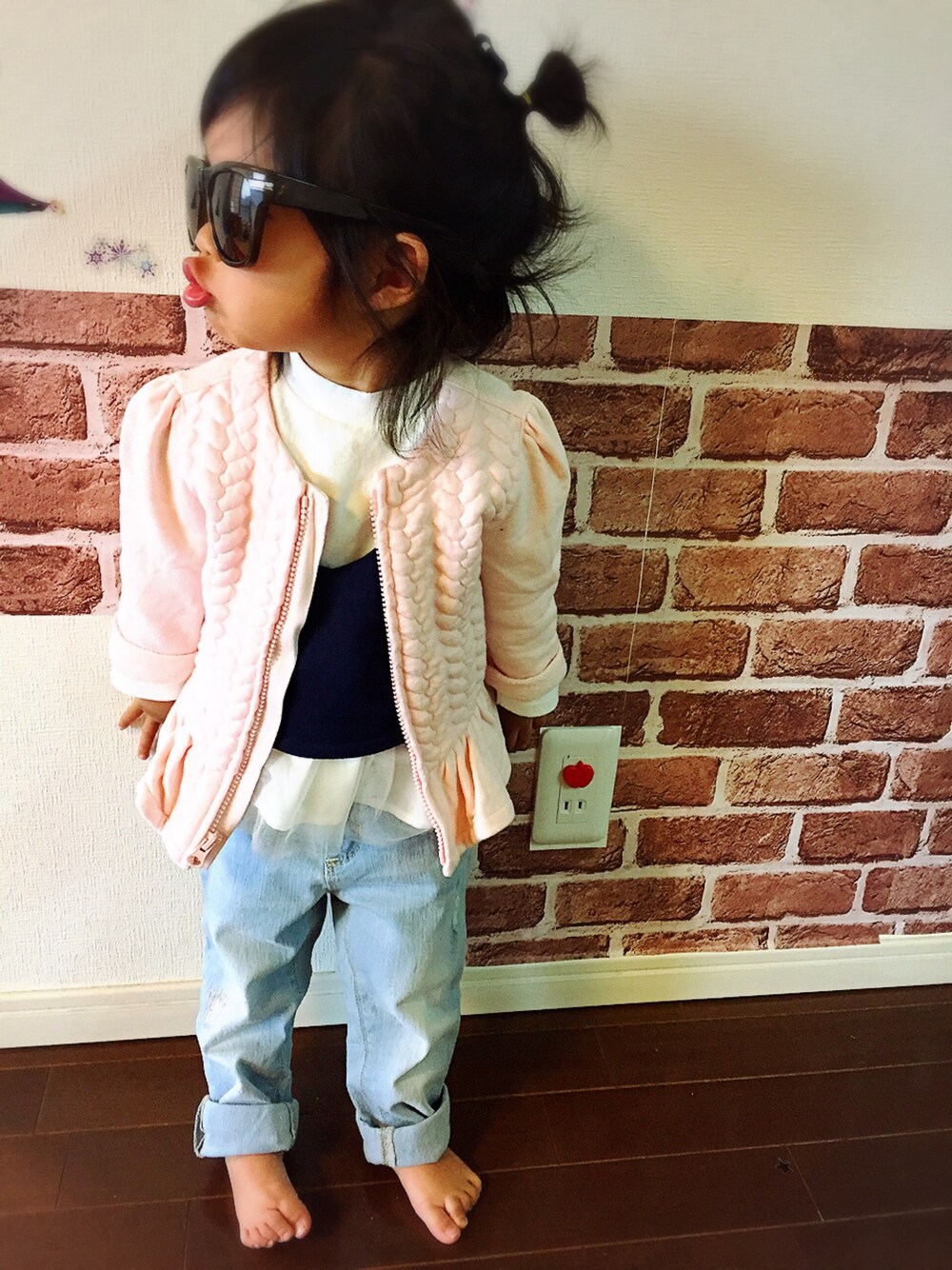 ご覧頂きありがとうございます💕 今日暖かくなるって言ってや〜〜ん(>_<) 寒いし…❄️ でも気持ちは春物着たいので、お気に入りのを着せてみましたぁ✨ 明日マンション断水だって…笑 朝から夕方まで…笑 おでかけしましょ🎶