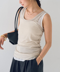 ene(アバハウス ラストワード ガーデン梅田大丸店(Rouge vif))のタンクトップ「【2枚セット】レイヤードカットタンクトップ/裾メローデザイン」を使ったコーディネート