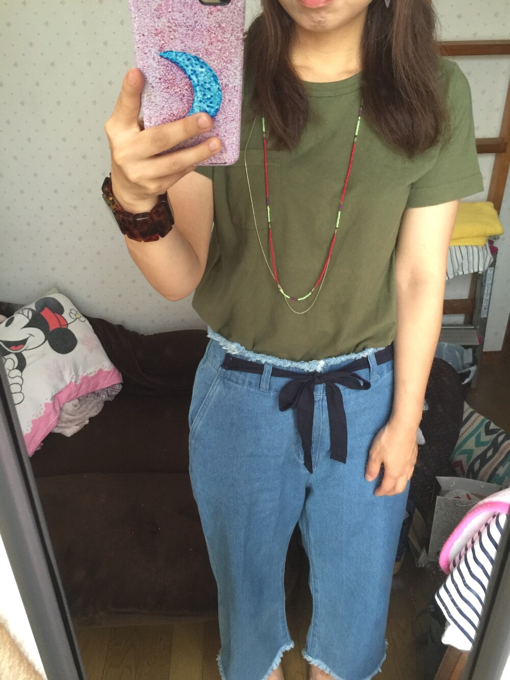今日も雨が降りそうなのでラフに、カーキのチャンピオンTシャツは便利すぎて、ついつい着ちゃいます!