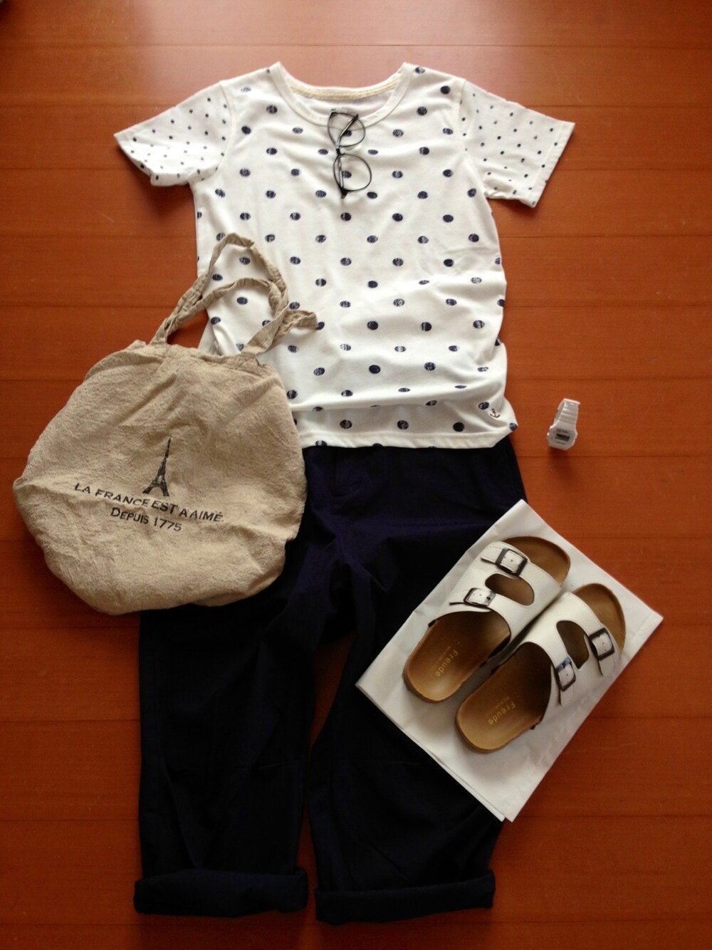 どうだろ〜 衝動買い してしまいました。 ネイビーのパンツとネイビー水玉のTシャツ このコーデ好きだなぁ〜